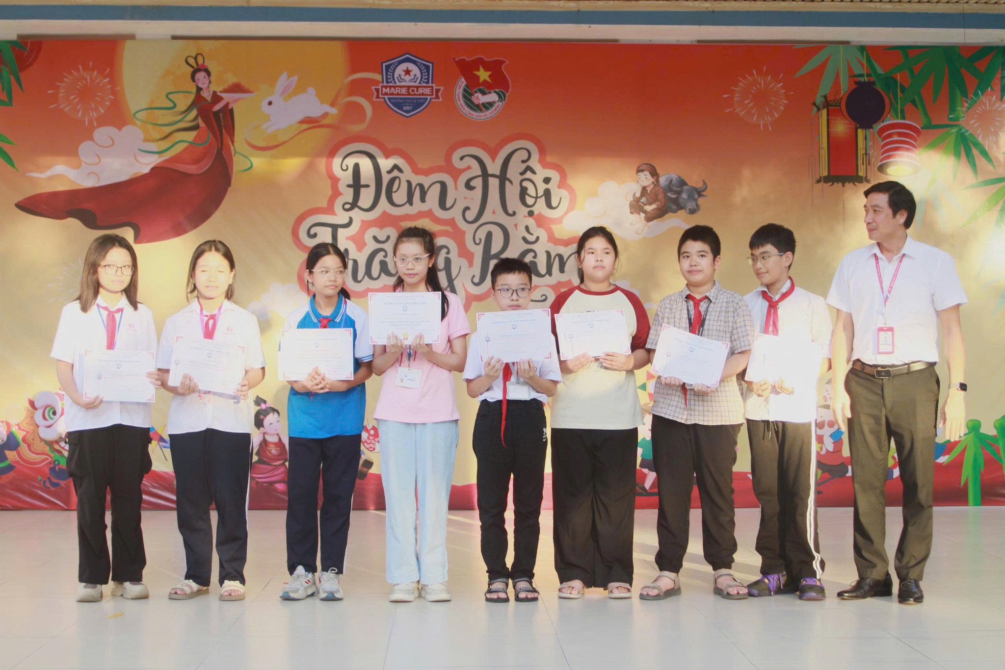 (Thầy Trần Văn Thiện – PHT nhà trường trao HB cho các HS đạt thành tích tốt trong Kỳ KSCL lần I tại CS1 trong dịp Tết Trung thu)