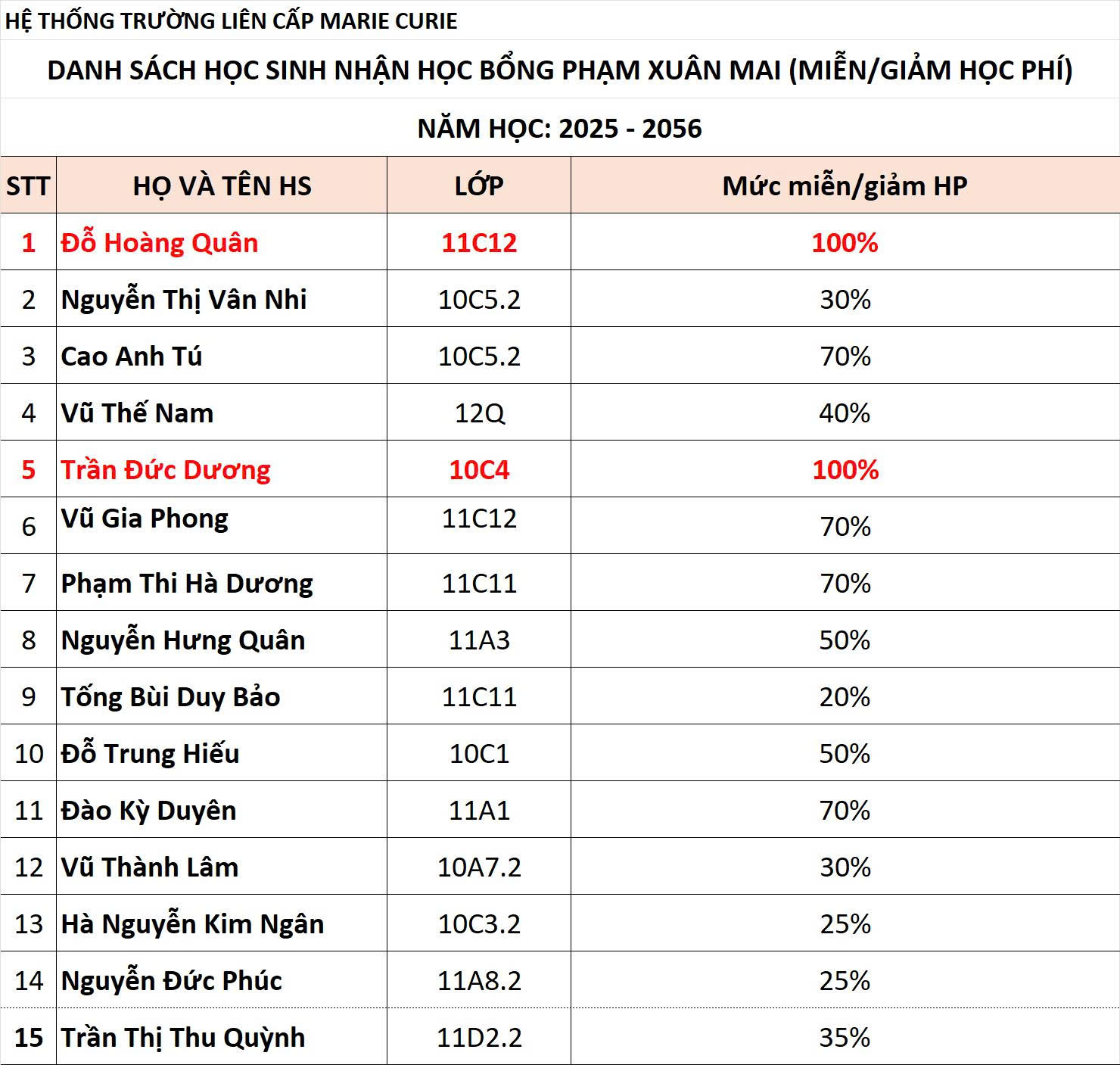Xin trân trọng cảm ơn Quỹ học bổng Phạm Xuân Mai đã luôn đồng hành trong hành trình chăm lo, bồi dưỡng thế hệ học sinh giàu tri thức – vững nhân cách – sáng tương lai! 💐