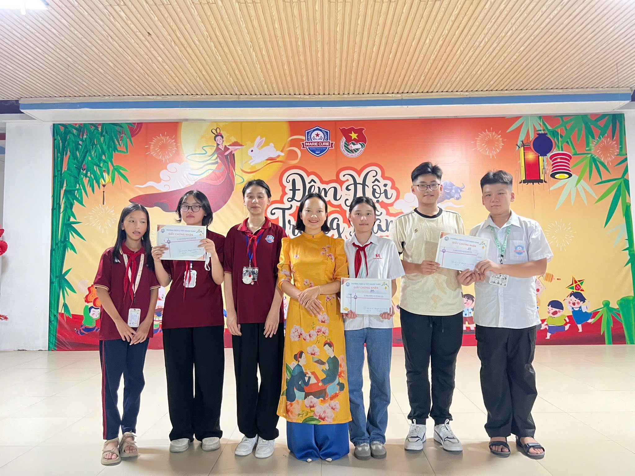 (Cô Vũ Thị Hoài – PHT nhà trường trao HB cho các HS đạt thành tích tốt trong Kỳ KSCL lần I tại CS2 trong dịp Tết Trung thu)