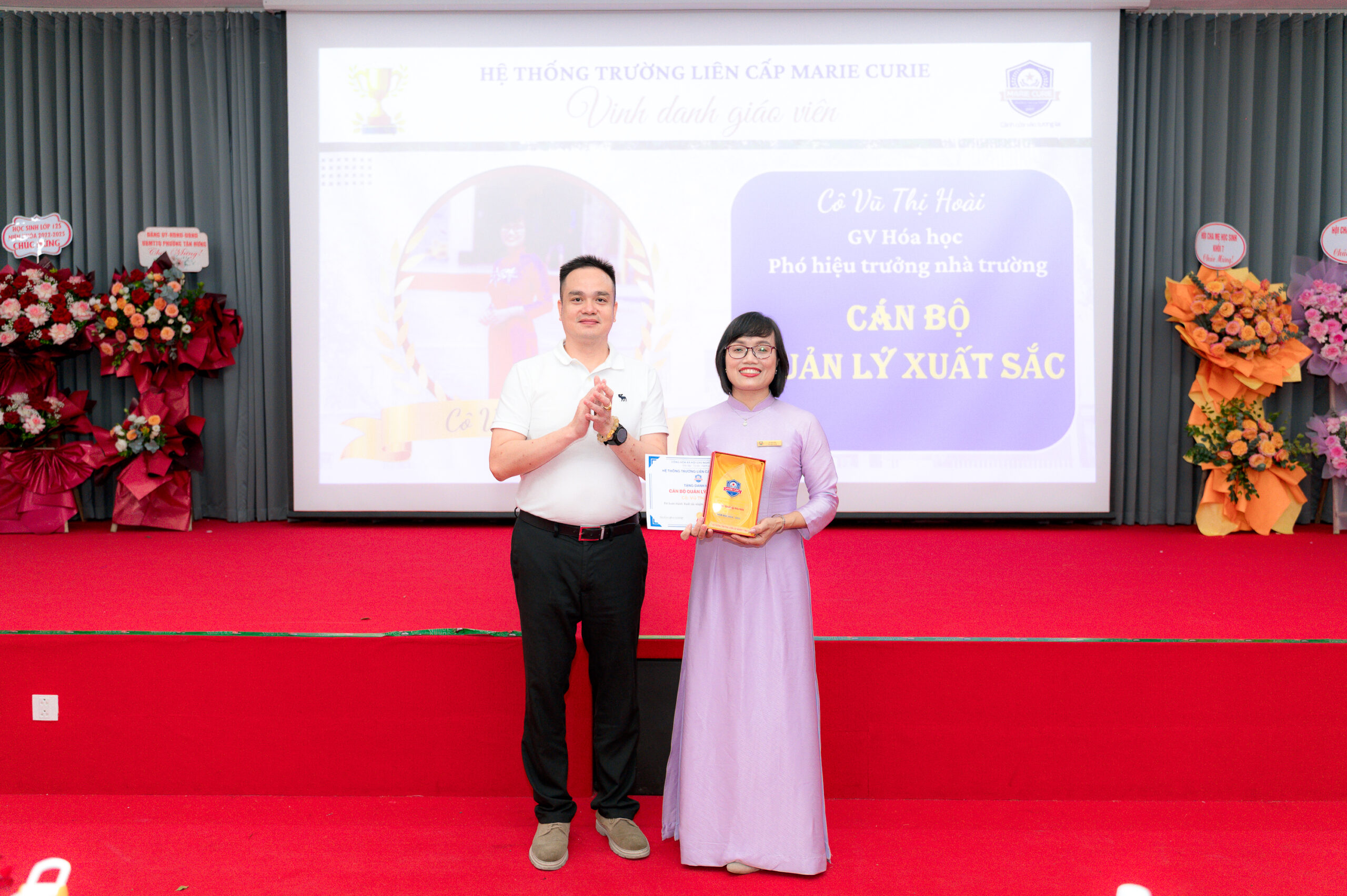 Đặc biệt, Hội nghị đã vinh danh và trao kỷ niệm chương, phần thưởng cho những tập thể, cá nhân tiêu biểu – những thầy cô, nhân viên đã miệt mài cống hiến, lan tỏa tinh thần tận tâm và sáng tạo, góp phần vào thành tích chung của Hệ thống trường liên cấp Marie Curie với các hạng mục: