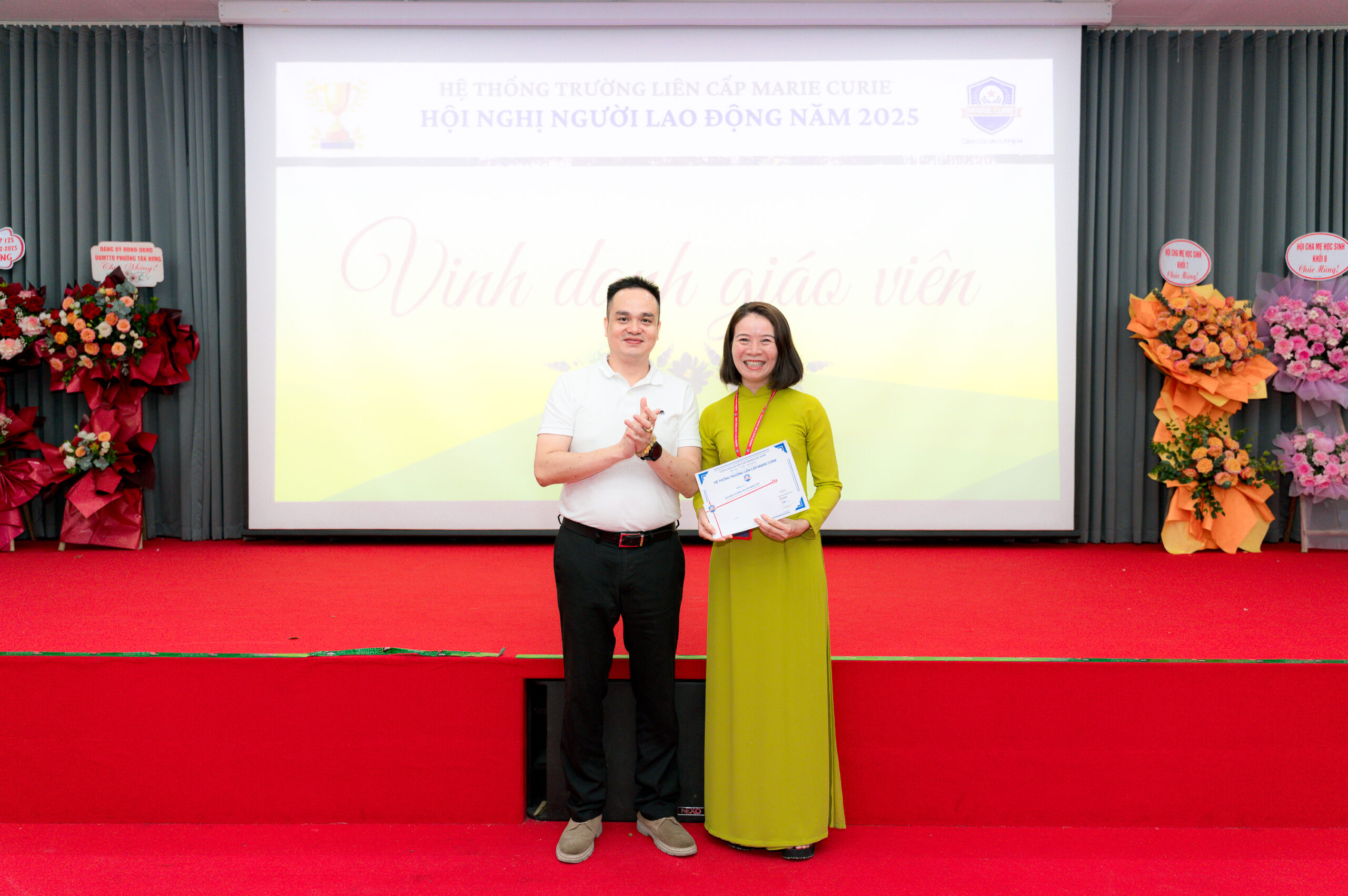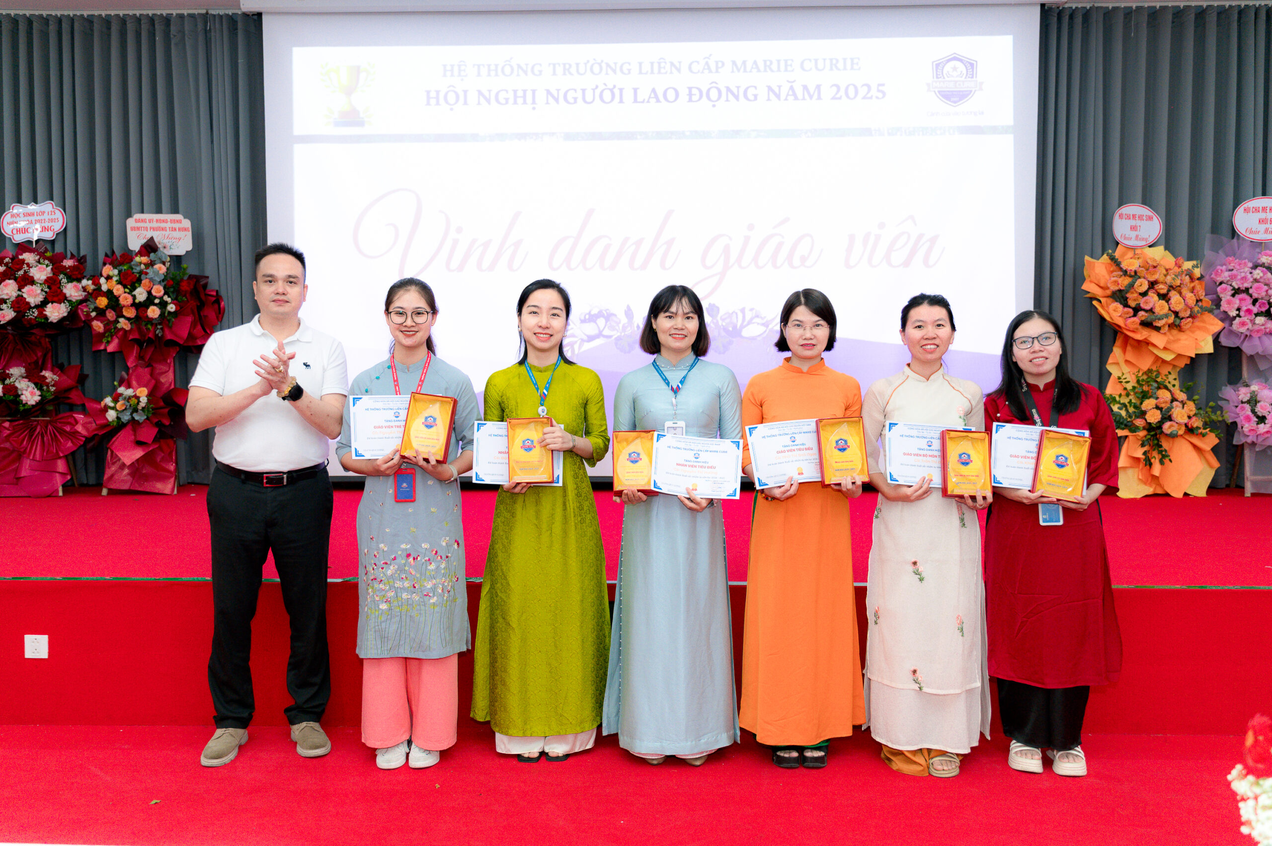 Đặc biệt, Hội nghị đã vinh danh và trao kỷ niệm chương, phần thưởng cho những tập thể, cá nhân tiêu biểu – những thầy cô, nhân viên đã miệt mài cống hiến, lan tỏa tinh thần tận tâm và sáng tạo, góp phần vào thành tích chung của Hệ thống trường liên cấp Marie Curie với các hạng mục: