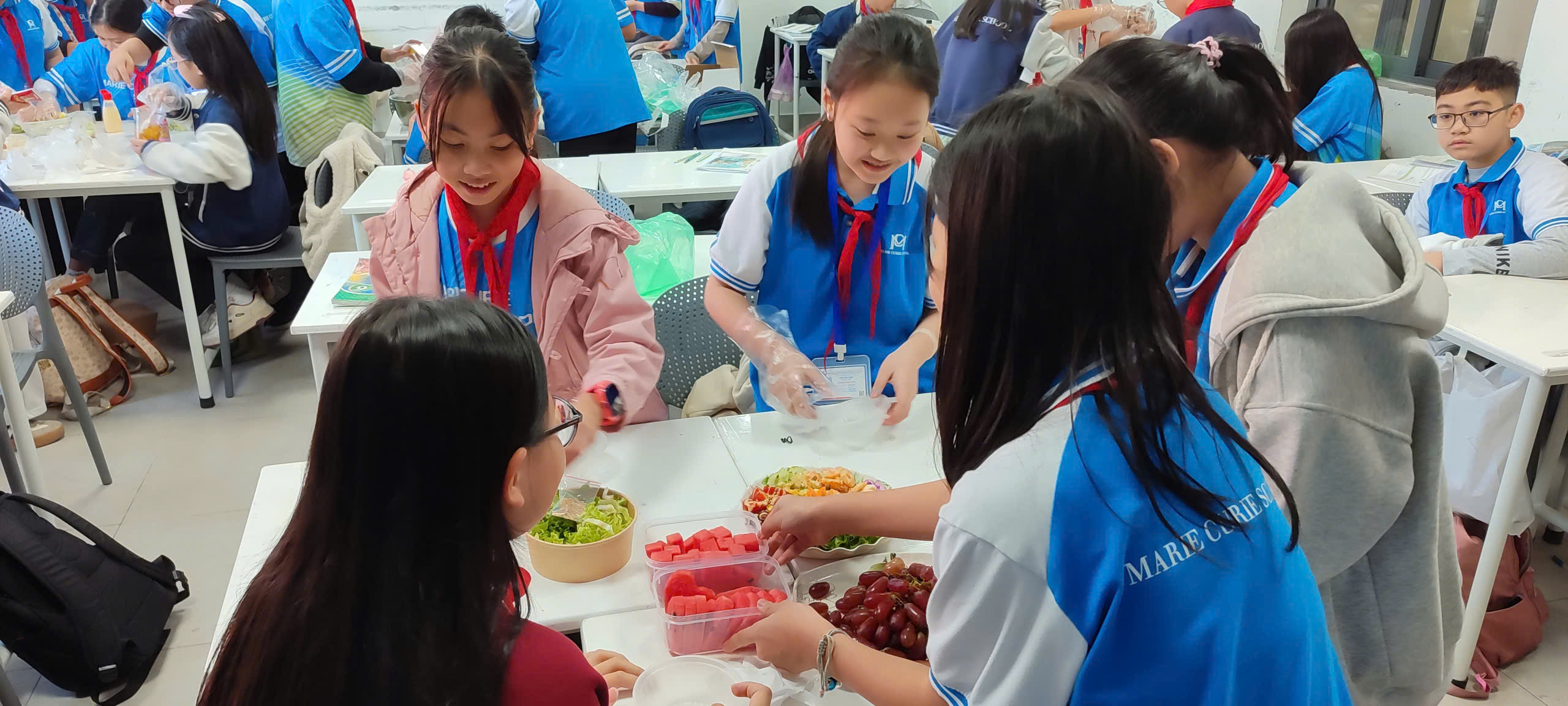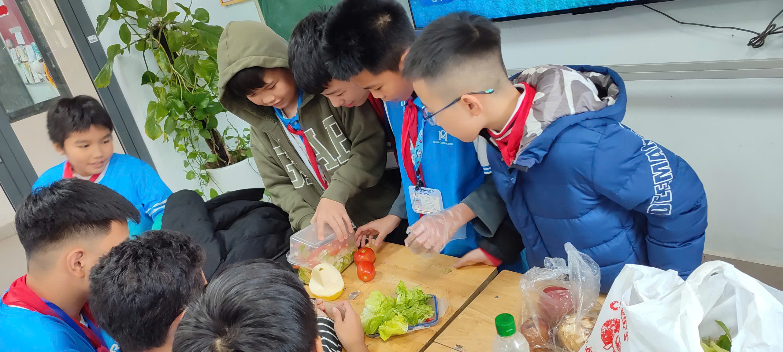 Bên cạnh đó, ở môn Công nghệ 6, học sinh hào hứng tham gia thực hành chế biến thực phẩm với món rau trộn. Từ việc lựa chọn nguyên liệu, sơ chế, phối hợp gia vị đến trình bày sản phẩm, học sinh được vận dụng kiến thức vào thực tiễn, đồng thời phát triển các kỹ năng thiết yếu như hợp tác, sáng tạo, tự phục vụ và đảm bảo an toàn vệ sinh thực phẩm.