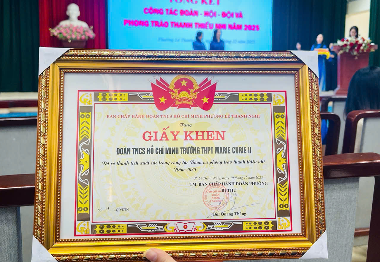 Trong không khí phấn khởi tổng kết công tác Đoàn – Hội – Đội và phong trào thanh thiếu nhi năm 2025, Đoàn TNCS Hồ Chí Minh Hệ thống Trường Liên cấp Marie Currie vinh dự được Ban Chấp hành Đoàn TNCS Hồ Chí Minh phường Tân Hưng và phường Lê Thanh Nghị trao tặng Giấy khen vì đã có thành tích xuất sắc trong công tác Đoàn và phong trào thanh thiếu nhi năm 2025.