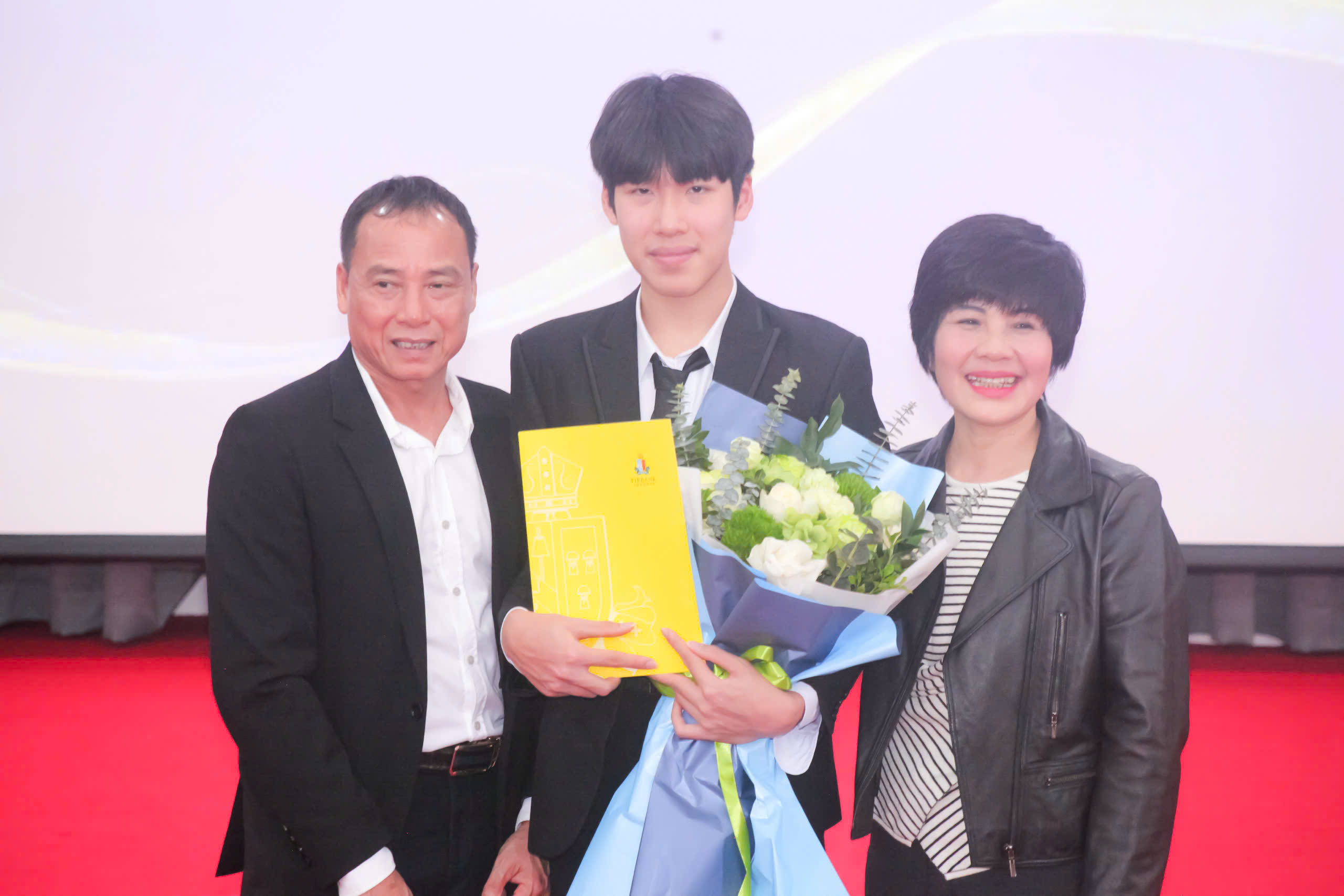 (Học sinh Trần Hữu Phong cùng bố mẹ)