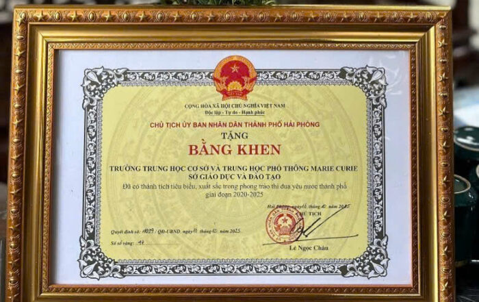 VINH DỰ VÀ TỰ HÀO – MARIE CURIE NHẬN BẰNG KHEN CỦA CHỦ TỊCH UBND THÀNH PHỐ HẢI PHÒNG